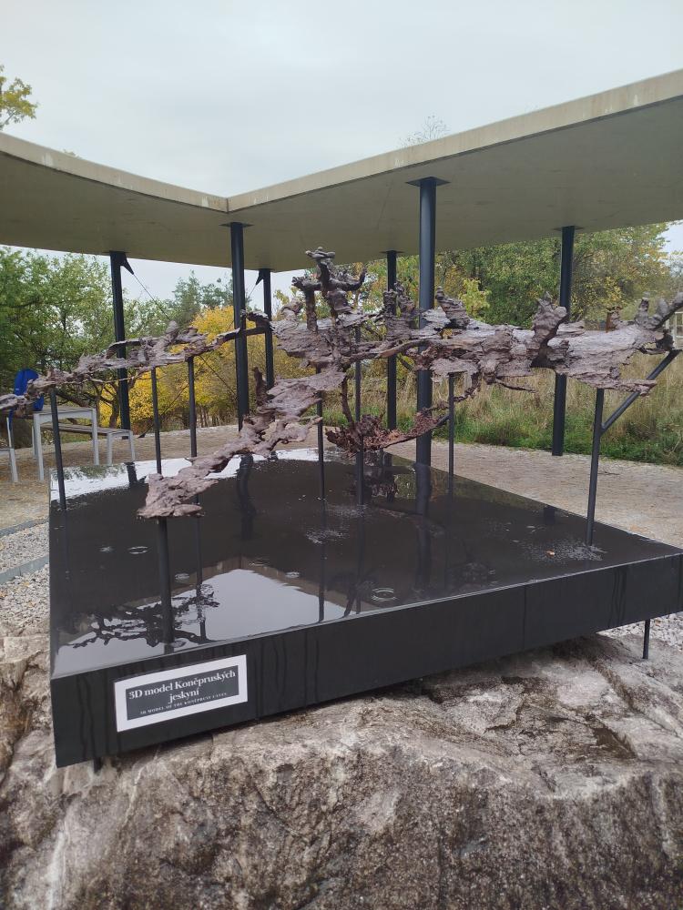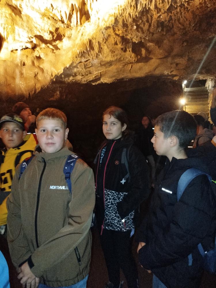 Moderně zařízený areál Koněpruských jeskyní žákům nabídl pohled na nedaleký vápencový lom. Při těžbě vápence byly ostatně samotné jeskyně objeveny. Po vstupu jsme mohli spatřit i několik netopýrů, kteří zde hledají útočiště. Všude okolo jsme viděli krápníkové útvary, přírodní sochařskou práci vzniklou prosakováním vody ohohacené o vápenec, která se vytváří velice pomalu, ale může se snadno zničit. Některé krápníky už byly tak velké, že se zbortily pod vlastní vahou.