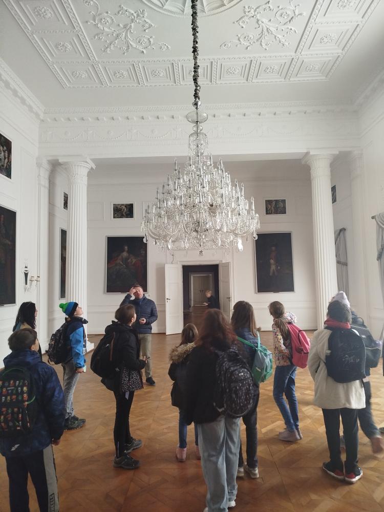 Z areálu jeskyní jsme se poté vydali na zámek Hořovice postavený v barokním slohu, kde jsme mimo sezónu měli domluvenou prohlídku. Dozvěděli jsme se mnoho o architektuře, ale také o životě šlechty, výchově dětí, ale také životě služebnictva na zámku. Viděli jsme mnoho uměleckých předmětů a místností, z nichž každá měla svůj specifický účel.