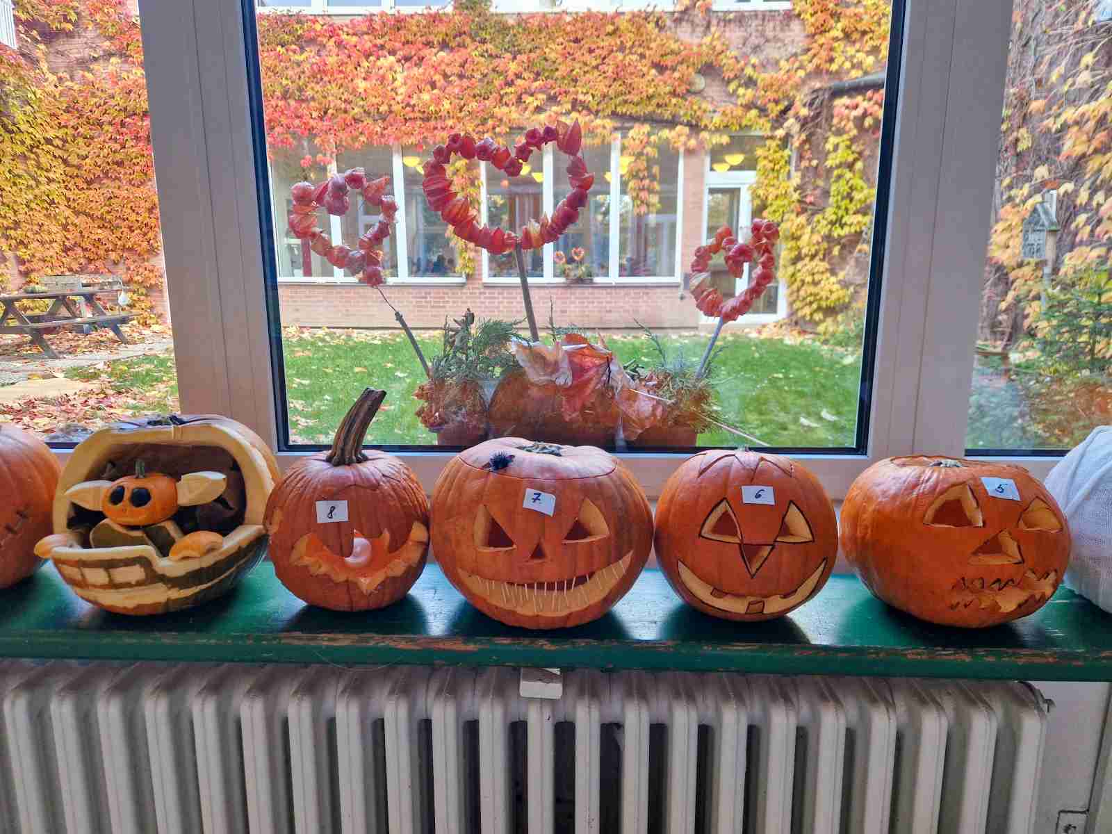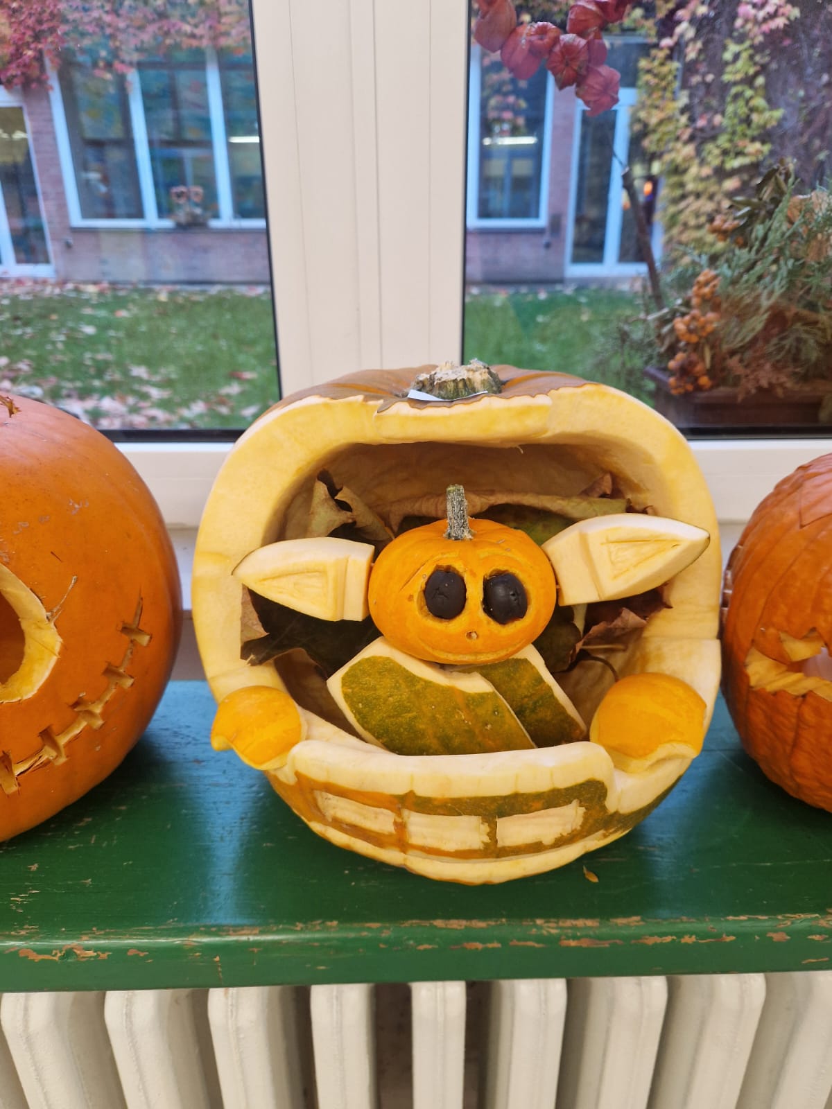 Naše škola letos poprvé uspořádala soutěž "Dlabací výzva", při které žáci doma tvořili originální vydlabané dýně.