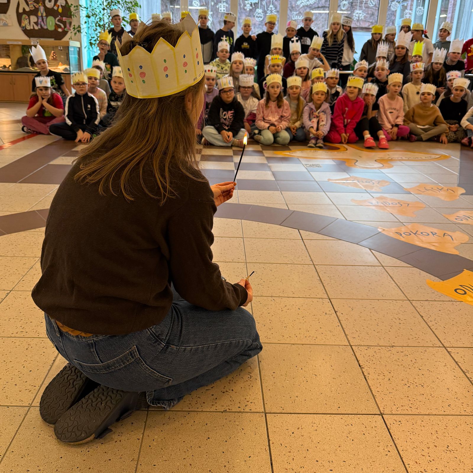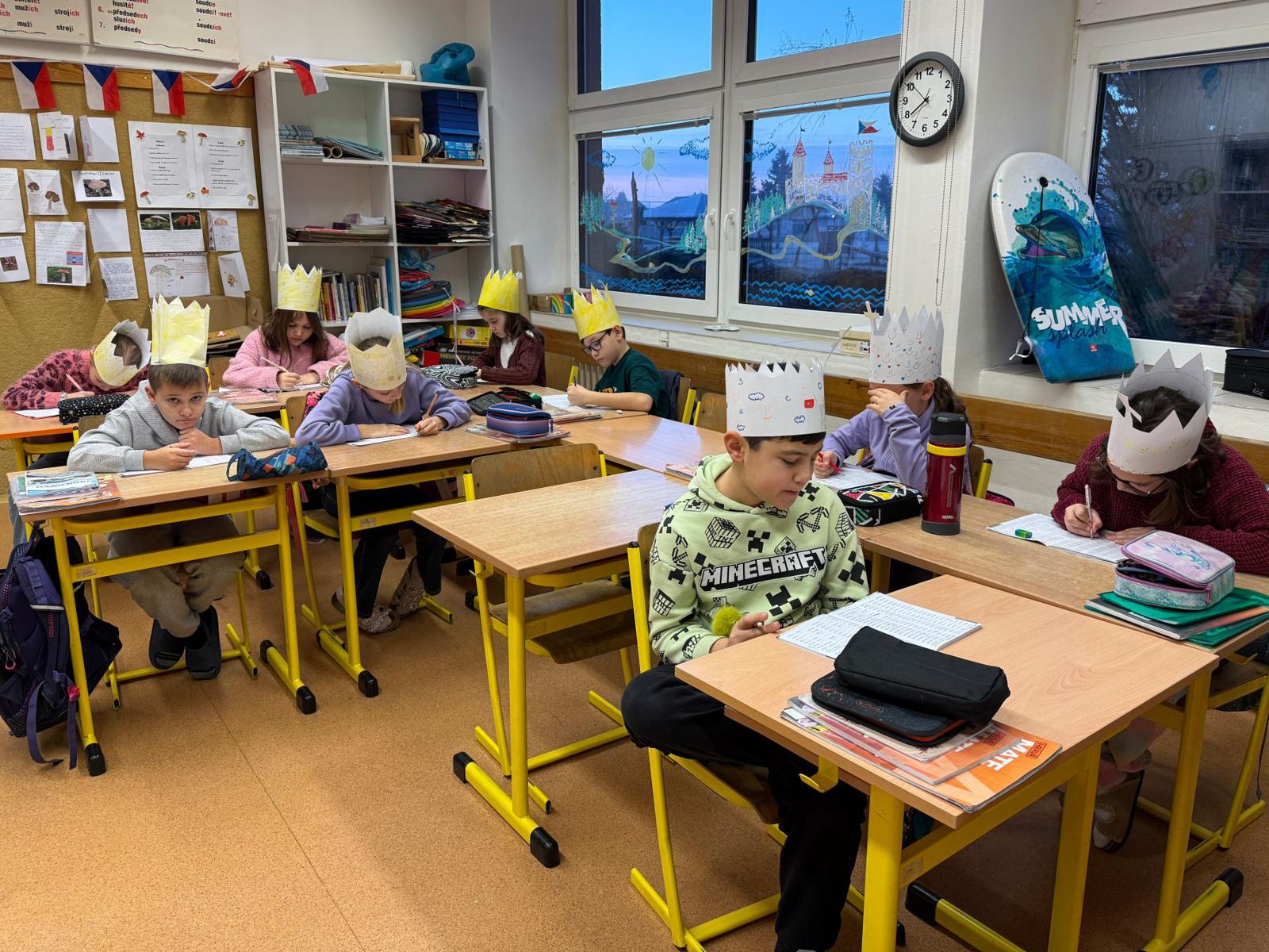 Ve škole jsme oslavili svátek Tří králů. Děti si vyrobily koruny, ve kterých chodily celý den, a zahrály si na Kašpara, Melichara či Baltazara. Třeťáci, čtvrťáci a páťáci luštili poselství - nápovědy hledali ve čteném textu a na chodbách.