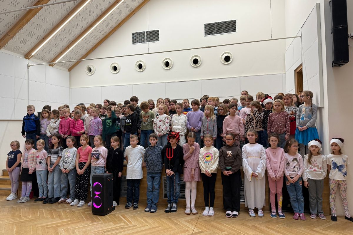 Naše děti z 1. stupně společně se svými učitelkami připravily pro rodiče, prarodiče a další hosty vánoční koncert a představení. Diváci si mohli užít pestrou škálu vystoupení – od divadelních scének, přes taneční čísla a zpívané skladby, až po mluvené slovo a přednes. Program byl plný radosti, energie a vánoční atmosféry, a všechny děti ukázaly, co se během několika týdnů naučily. Hosté odcházeli s úsměvem a plni dojmů z krásně prožitého předvánočního odpoledne.