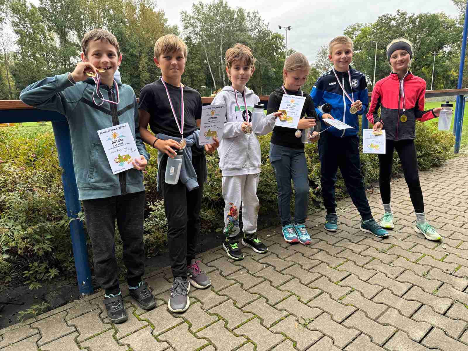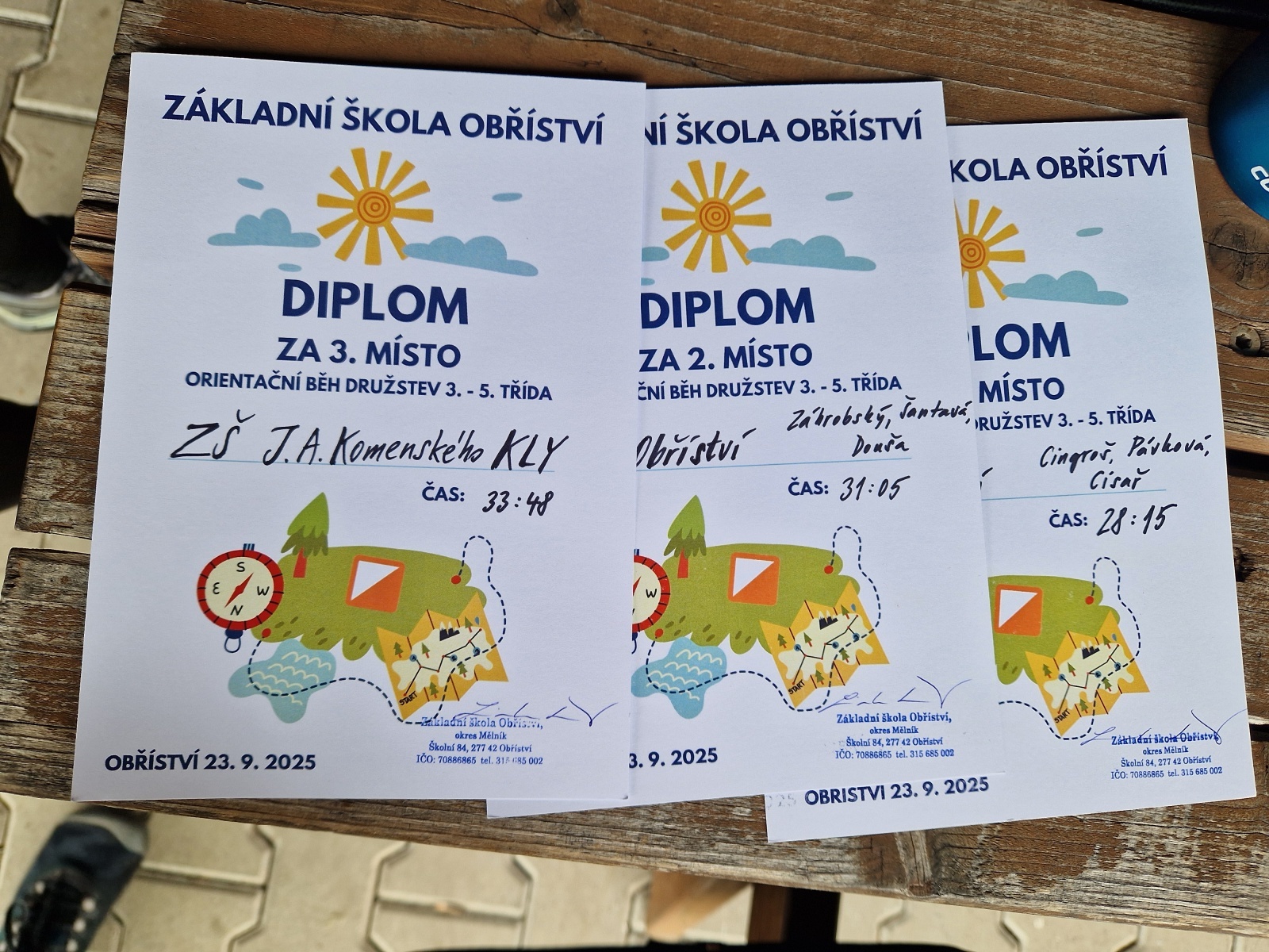 V každém družstvu byl jeden závodník ze třetí, jeden ze čtvrté a jeden z páté třídy. Všichni proběhli stejnou trasu závodu a jejich časy se následně sečetly. Každý závodník běh na trati prožíval po svém – někdo běžel s lehkostí, jiný s vypětím a soustředěním, ale všichni nakonec úspěšně dorazili do cíle a většina se zaplněnými kartičkami. Naši běžci si odnesli zlato i stříbro a znalost prostředí zde zřejmě trochu sehrála svou roli, přesto jim soupeři „šlapali na paty“. Třetí místo zaujali závodníci ze Základní školy Kly.
